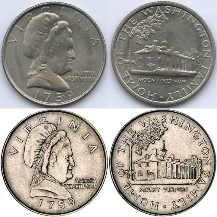 This is the Martha Washington quarter. It is believed to be the first metallurgical trials using the current cupro-nickel clad planchets. The Martha Washington obverse was designed by Edward R. Grove and the reverse is by Philip Fowler.