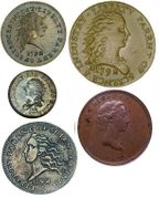 In conclusion, the pattern coins of 1792 are among the rarest, most puzzling, and most historical of all American coinage. These fascinating items are national treasures which reflect the young and developing United States. Although they may not display the signatures of the founding fathers like the Declaration of Independence does, their influence is still very much in evidence on these coins. Just as the early leaders such as George Washington and Thomas Jefferson all played a role in the creation of the Constitution, which governs our nation today, the coins of today follow the Mint Act of 1792 they drafted. The 1792 silver center cent, fusible alloy cent, Birch cent, half disme, disme, and quarter dollar were the ancestors of the "penny," nickel, dime, and quarter that are commonly used today.
